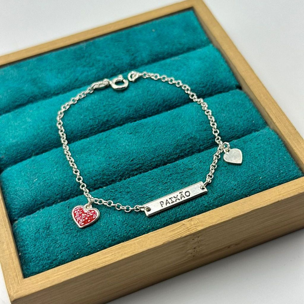 Pulseira placa paixao e coração feminina prata 925 Acompanha certificado que garante autenticidade da prata 925Comprimento: 18,50cm Todas as nossas peças são de prata legítima, compre e tenha certeza de receber uma joia com duração para o resto da vida. A prata 925 é um material que tem garantia e durabilidade permanente, assim como o ouro 18k. Nossas jóias tem certificado de autenticidade reconhecidos no mundo todo, você pode levar em qualquer joalheria para efetuar os testes e comprovar a autenticidade das mesmas. Havendo dúvidas, não hesite em perguntar por favor! Será um prazer atendê-lo. Aqua Jóias