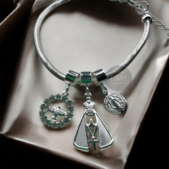 Pulseira Folheada Prata Nossa Senhora Aparecida Acessório Religioso Feminino