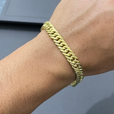 Produto é 100% Moeda Antiga! – Não descasca; – Não enferruja; – Não perde a cor; Jóias feitas de Moedas Antigas tem um dourado maciço. Por conta disso elas não descascam, não enferrujam e não perde a cor. A mesma necessita de uma limpeza frequente e, em alguns casos, o polimento que pode ser feito em casa mesmo. Tem 3 produtos que indicamos usar para o polimento (Kaol, Silvo ou Brasso). Esses produtos de polimento podem ser encontrados facilmente em mercados. IMPORTANTE: Após lavar, é preciso que seque bem a peça para não acontecer de oxidar a peça. PERGUNTAS FREQUENTES: 01 – COMO POLIR? Com o auxílio de um polidor de metais (Kaol, Silvo ou Brasso), você vai colocar o mesmo em uma flanela e esfregar na peça para poder dar brilho. Após o polimento, limpe bem com detergente e seque. 02 – COMO LAVAR? A lavagem pode ser feita de duas maneiras: 1° Detergente e vinagre álcool: misture os dois e esfregue bem a peça, após isso enxague e seque bem. 2° Shampoo: basta esfregar bem a peça, enxaguar e secar bem. 03 – POSSO TOMAR BANHO DE MAR? Pode sim, por elas conterem um dourado maciço, ela vai apenas sujar um pouco mais rápido por conta do sal que tem na água, mas se fizer a limpeza que a gente indica já volta o brilho. 04 – CORRENTE OU PULSEIRA VEM COM 750 GRAVADO? Sim, quando solicitado pelo cliente, sem custo adicional. 05 – QUAL O COMPRIMENTO PADRÃO DA CORRENTE? 65 cm para masculinas e 45 cm para femininas. 06 – QUAL O COMPRIMENTO PADRÃO DA PULSEIRA? 20 cm para masculinas e 17 cm para femininas.