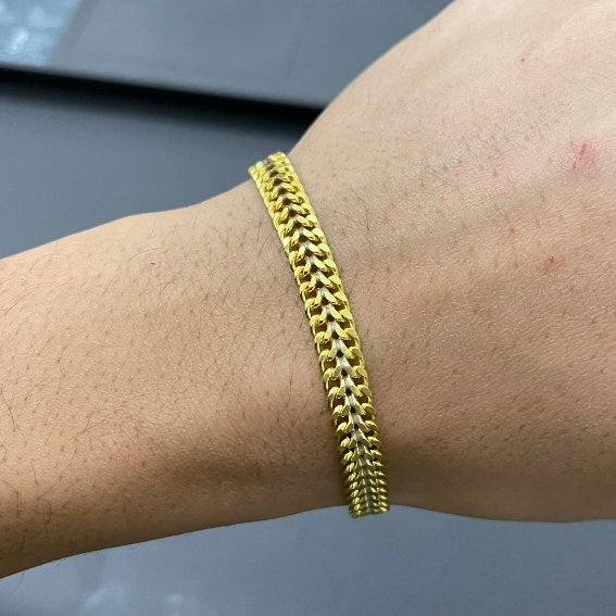 Produto é 100% Moeda Antiga! – Não descasca; – Não enferruja; – Não perde a cor; Jóias feitas de Moedas Antigas tem um dourado maciço. Por conta disso elas não descascam, não enferrujam e não perde a cor. A mesma necessita de uma limpeza frequente e, em alguns casos, o polimento que pode ser feito em casa mesmo. Tem 3 produtos que indicamos usar para o polimento (Kaol, Silvo ou Brasso). Esses produtos de polimento podem ser encontrados facilmente em mercados. IMPORTANTE: Após lavar, é preciso que seque bem a peça para não acontecer de oxidar a peça. PERGUNTAS FREQUENTES: 01 – COMO POLIR? Com o auxílio de um polidor de metais (Kaol, Silvo ou Brasso), você vai colocar o mesmo em uma flanela e esfregar na peça para poder dar brilho. Após o polimento, limpe bem com detergente e seque. 02 – COMO LAVAR? A lavagem pode ser feita de duas maneiras: 1° Detergente e vinagre álcool: misture os dois e esfregue bem a peça, após isso enxague e seque bem. 2° Shampoo: basta esfregar bem a peça, enxaguar e secar bem. 03 – POSSO TOMAR BANHO DE MAR? Pode sim, por elas conterem um dourado maciço, ela vai apenas sujar um pouco mais rápido por conta do sal que tem na água, mas se fizer a limpeza que a gente indica já volta o brilho. 04 – CORRENTE OU PULSEIRA VEM COM 750 GRAVADO? Sim, quando solicitado pelo cliente, sem custo adicional. 05 – QUAL O COMPRIMENTO PADRÃO DA CORRENTE? 65 cm para masculinas e 45 cm para femininas. 06 – QUAL O COMPRIMENTO PADRÃO DA PULSEIRA? 20 cm para masculinas e 17 cm para femininas.