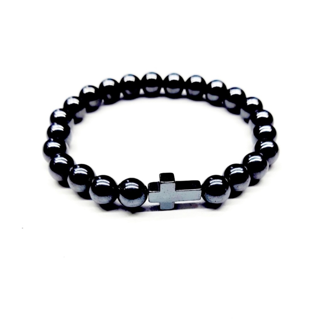 PULSEIRA HEMATITA COM CRUZ 8 MM. Sobre o produto Tamanho: 26 cm e 8 de diâmetro, pulseira elástico Materiais: pedras hematita e elástico Pedra: hematita de 8 mm Caso tenha alguma dúvida mande-nos mensagem pelo chat :)