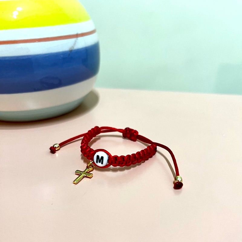 PULSEIRA INFANTIL COM LETRA INICIAL E PINGENTE DE CRUZ. TMANHO INFANTIL **INFORMAR LETRA DESEJADA NO CHAT**