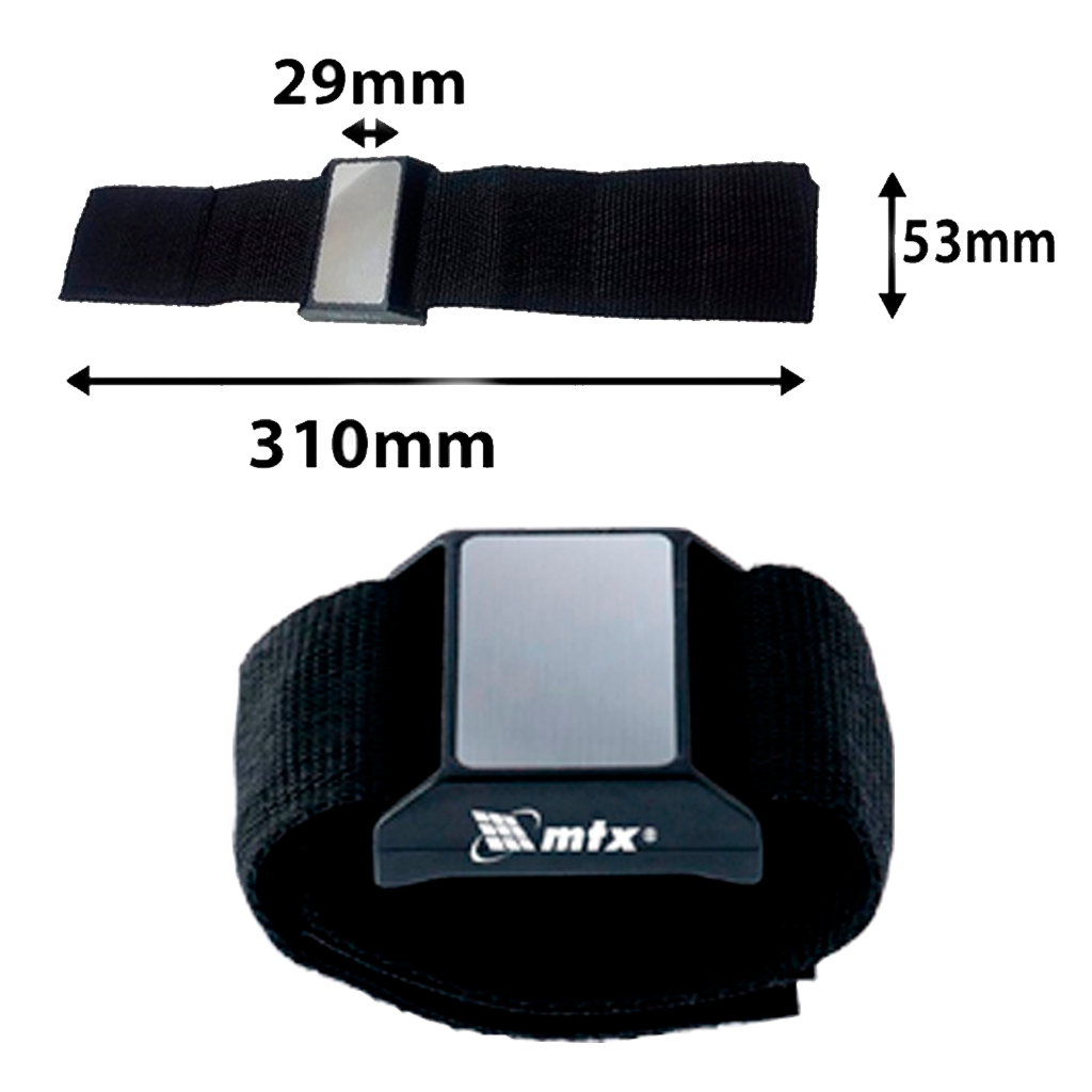 COMERCIAL VIPASA DISTRIBUIDORA. Pulseira Magnética para Metais Parafusos Pregos Alfinetes Agulhas Pulseira Magnética mtx para Metais, Parafusos, Alfinetes, Agulhas A Pulseira Magnética é ideal para quem trabalha com pregos, pinos, porcas e parafusos pequenos agulhas, alfinetes entre outros produtos metálicos. A pulseira é adaptável no pulso de qualquer tamanho Dados técnicos: Medida: 53 x 29 x 310 mm Material: metal e tecido COMERCIAL VIPASA DISTRIBUIDORA.