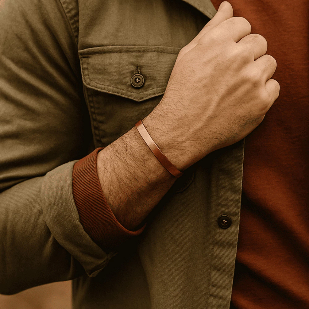 Pulseira Masculina de Cobre Puro Artesanal | Benefícios Ayurveda | Bracelete Antiestresse Estilo Rústico