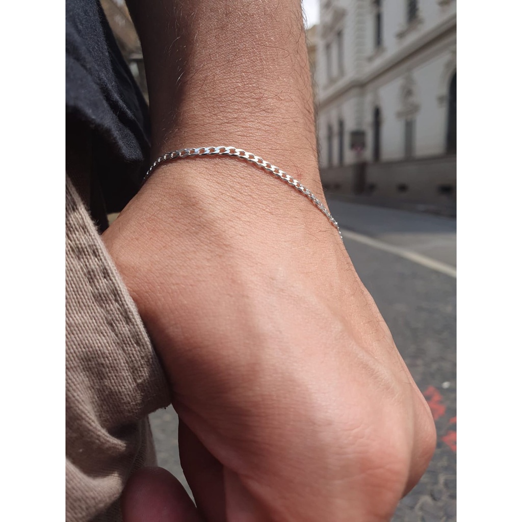 Pulseira Grumet escama de peixe 2mm totalmente em Prata 925 + Saquinho de organza Preto Pulseira Grumet Masculina fina, estilosa e perfeita para utilizar no dia-a-dia e combinar com qualquer roupa, feita totalmente em prata pura italiana 925 A Pulseira tem aproximadamente 1.9g, com elo grumet e 20 cm de comprimento, com 2mm de espessura Não se preocupe com a embalagem, enviamos a joia em uma lindo saquinho de organza preto, perfeito para armazenar a joia e ser prático. Todas as nossas peças acompanham um certificado de garantia permanente do teor da prata! *Não acompanha caixinha de veludo* Garantia: Não cobrimos oxidação, ou quebra do produto. Cobrimos apenas a prata 925. Como evitar o escurecimento da prata: 1. Evite utilizar a joia ao mexer com produtos químicos 2. Ao dormir, tire-a e enrole num papel higiênico ou guarde no porta joias 3. Armazene sua joia em um local seco e arejado 4. Não deixe a joia entrar em contato com cosméticos (perfumes, cremes, produtos ou procedimentos químicos do salão de beleza)