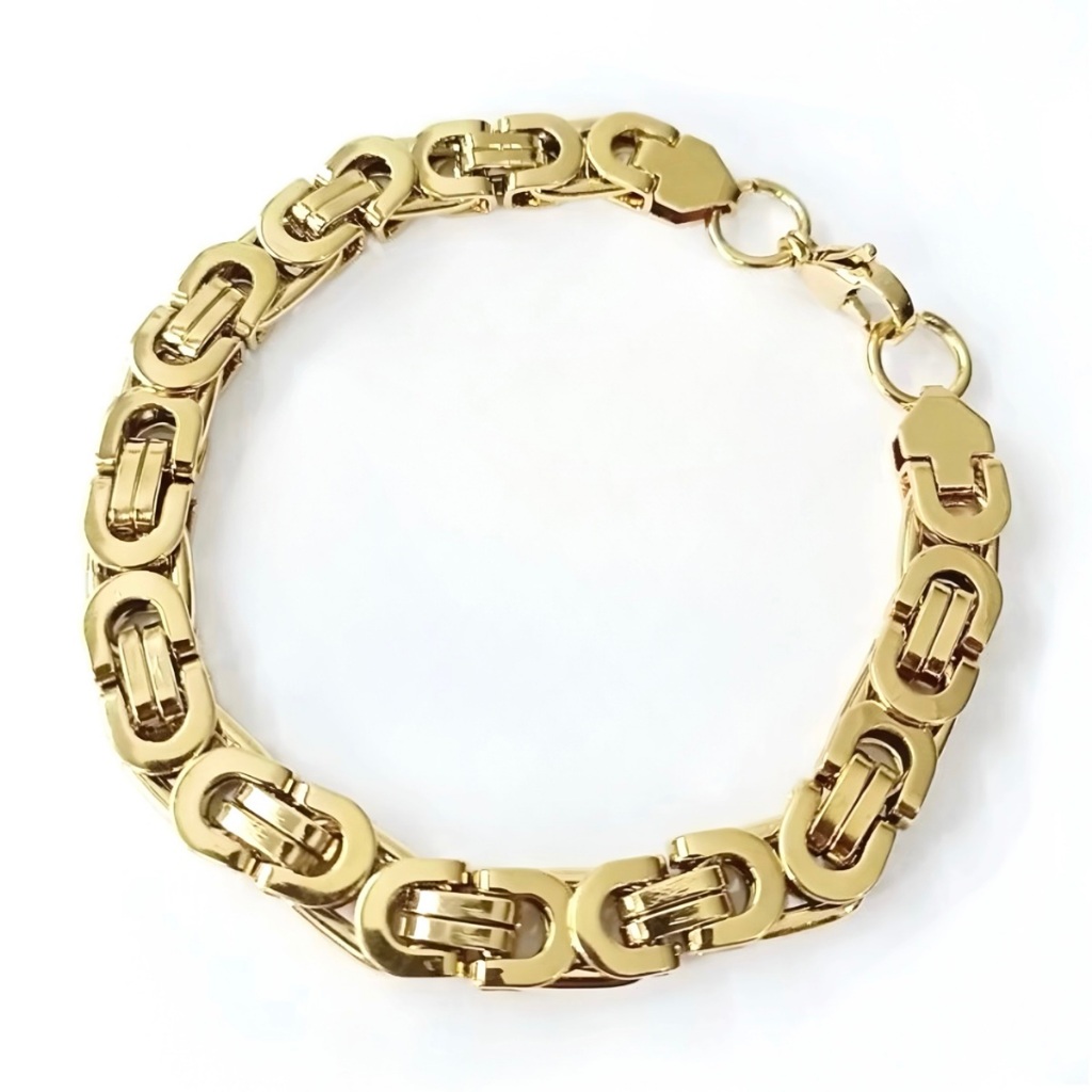 | Pulseira Masculina Dourada 21cm Bizantina Banhado Ouro 18k este produto | R$ 39,00 | — | 4.8/5 | 3 |