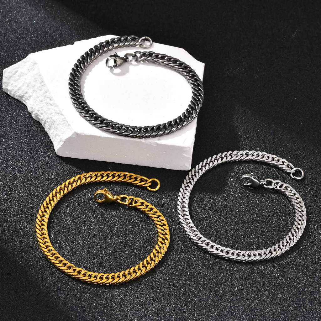 Pulseira Masculina Vnox Com Elo Cubano , Tecido Duplo , Aço Inoxidável , Hipoalergênico , Durável