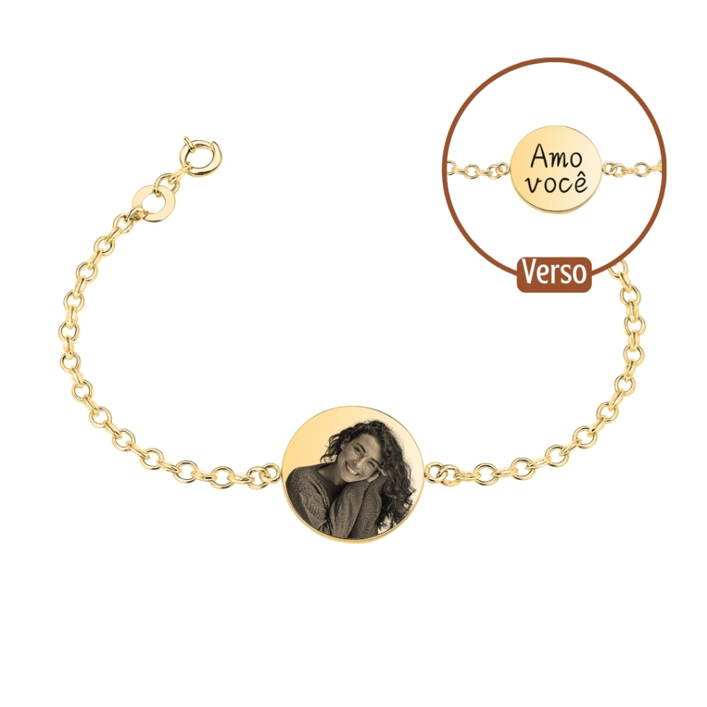 Pulseira Medalha Foto Personalizada Fotogravação à Laser Banhado a Ouro 18K ou Prata