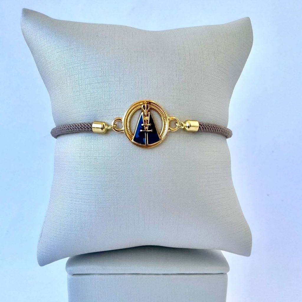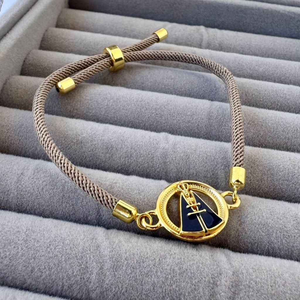 Pulseira ajustável em couro, com acabamento delicado e fecho prático. Seu destaque é a medalha folheada a ouro 18k, nas opções de Nossa Senhora Aparecida ou São Bento, com detalhes esmaltados que trazem sofisticação e fé em uma só peça. Um acessório moderno e significativo, perfeito para usar no dia a dia ou presentear alguém especial.
