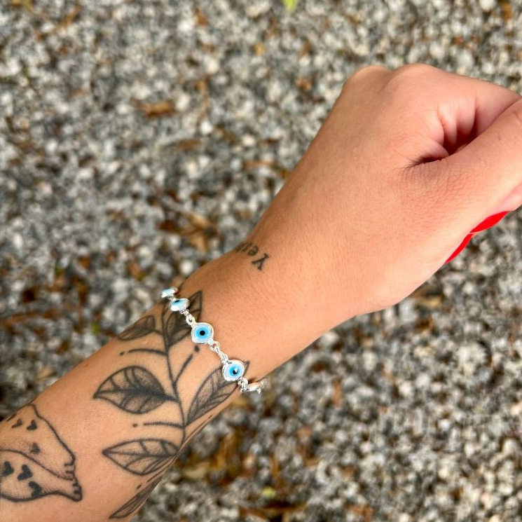 Pulseira Olha Grego Azul Claro a Prata Legitima 925 Feminino