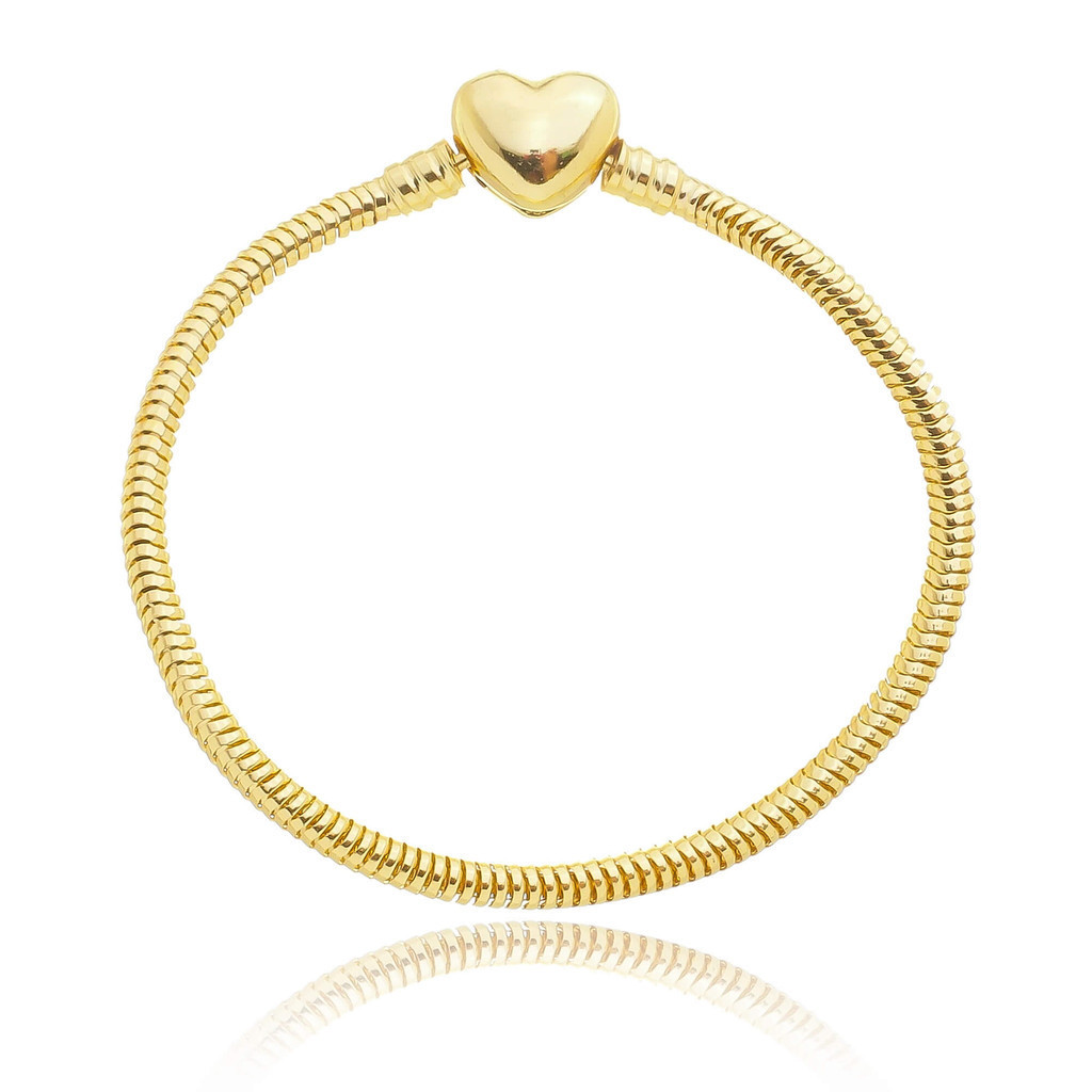 Pulseira Para Berloque Fecho Coração Banhado a Ouro 18k