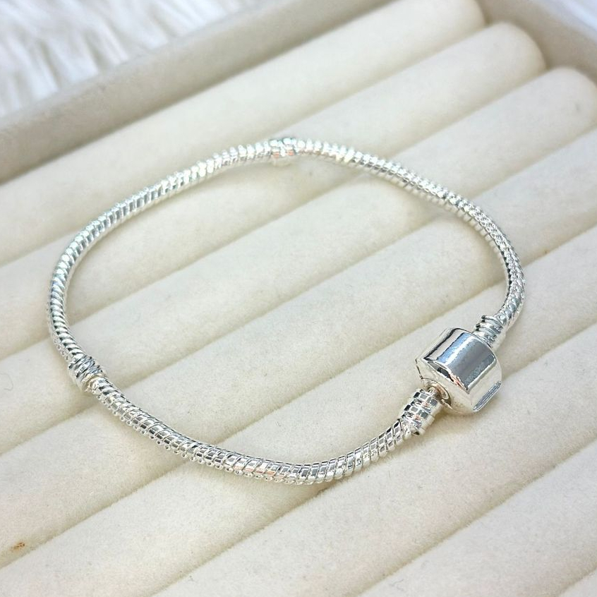 Pulseira Prata com Fecho Simples para Berloques Descubra a elegância da nossa pulseira para berloques com fecho simples, banhada a prata 925. Esta peça é a escolha perfeita para quem busca um acessório sofisticado e versátil, compatível com qualquer berloque que você desejar adicionar. Tamanhos disponíveis: - Infantil: 17cm - Adulto (pulso fino): 18cm - Padrão: 19cm - Larguinha: 20cm - Pulso mais largo: 21cm Dicas de Conservação: * Evite o contato com água e produtos químicos. * Remova antes de dormir ou praticar atividades físicas. * Guarde em local seco e arejado. Estamos à disposição para esclarecer qualquer dúvida. Adicione um toque especial ao seu estilo com esta pulseira encantadora!