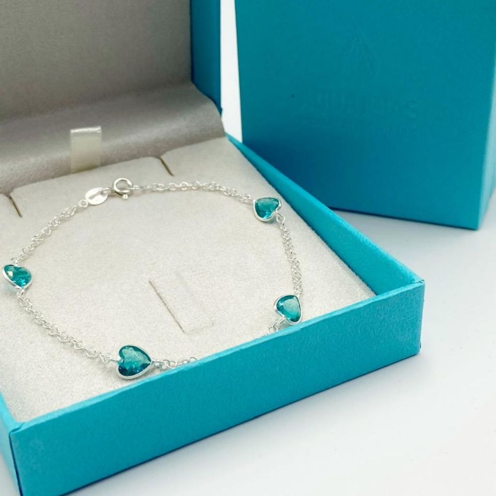 Pulseira prata 925 feminina coração zirconia turmarlina - Prata legitima