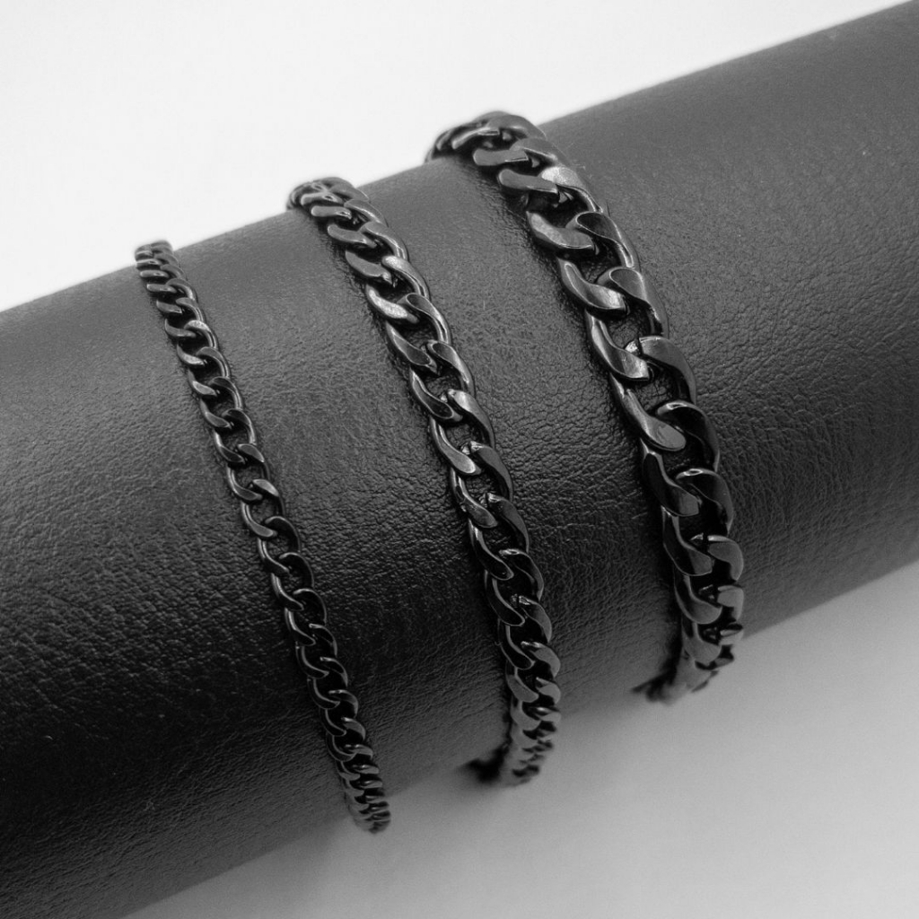 Pulseira preto Black Masculina Grumet Simples Aço Inox Fina Grossa Inoxidável 3mm 4mm 5mm 6mm