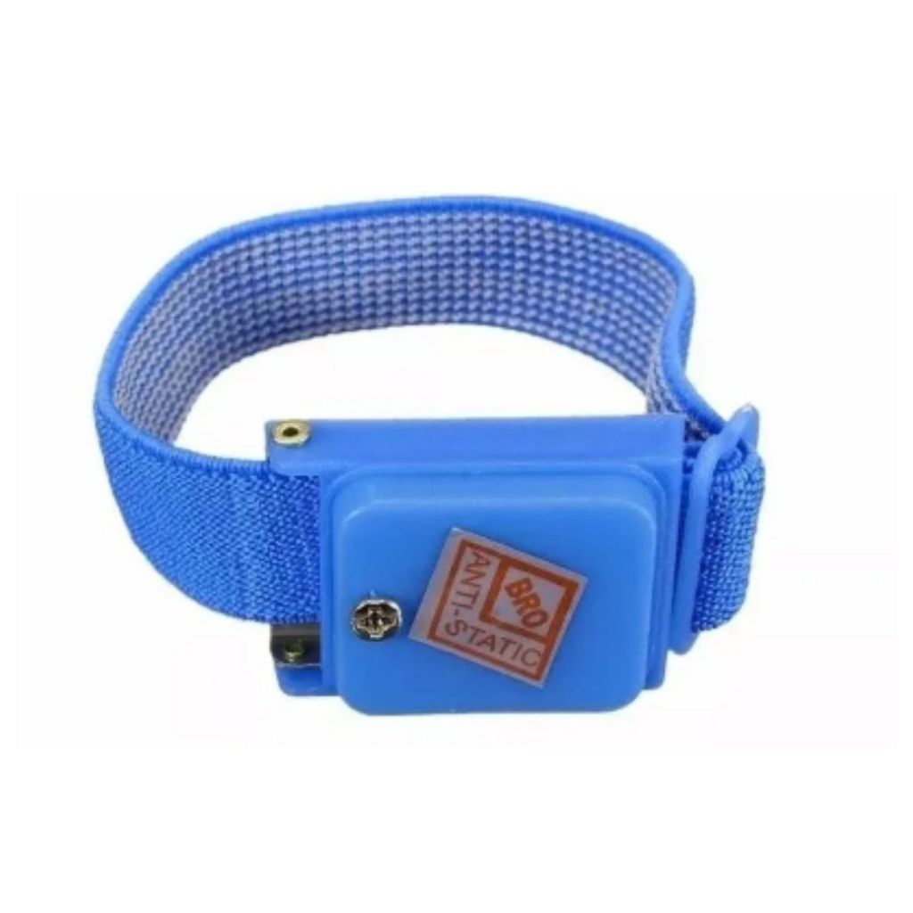 A Pulseira antiesática sem fio de proteção contra descargas eletrostáticas. Produto indispensável para o manuseiro de placas e circuitos eletrônicos e PCB's. * Ajustavél ao punho. * Acompanha pulseira extra. * Acompanha Nota Fiscal. * Garantia de 90 dias contra defeitos de fábrica. Características: Cor: azul Resistência: 1M Ohm (+/-5%) Tempo de descarga elétrica 0.1s