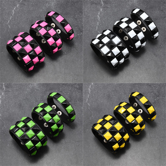 Pulseira Quadrada Exclusiva De Rebite Multicolorida Para Homens E Mulheres , Pulseiras De Festa Em Clube Punk , Joias