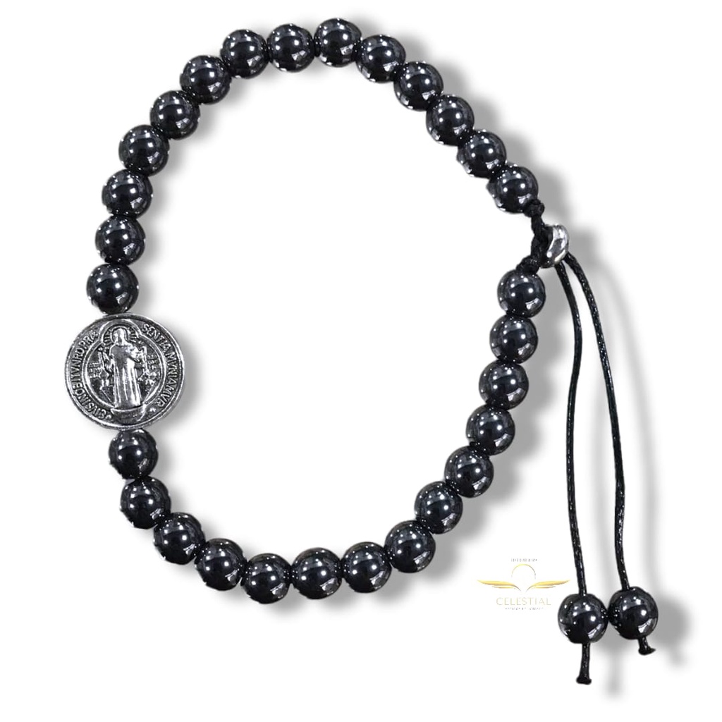 Pulseira Regulável Hematita Medalha Em Metal São Bento Promoção