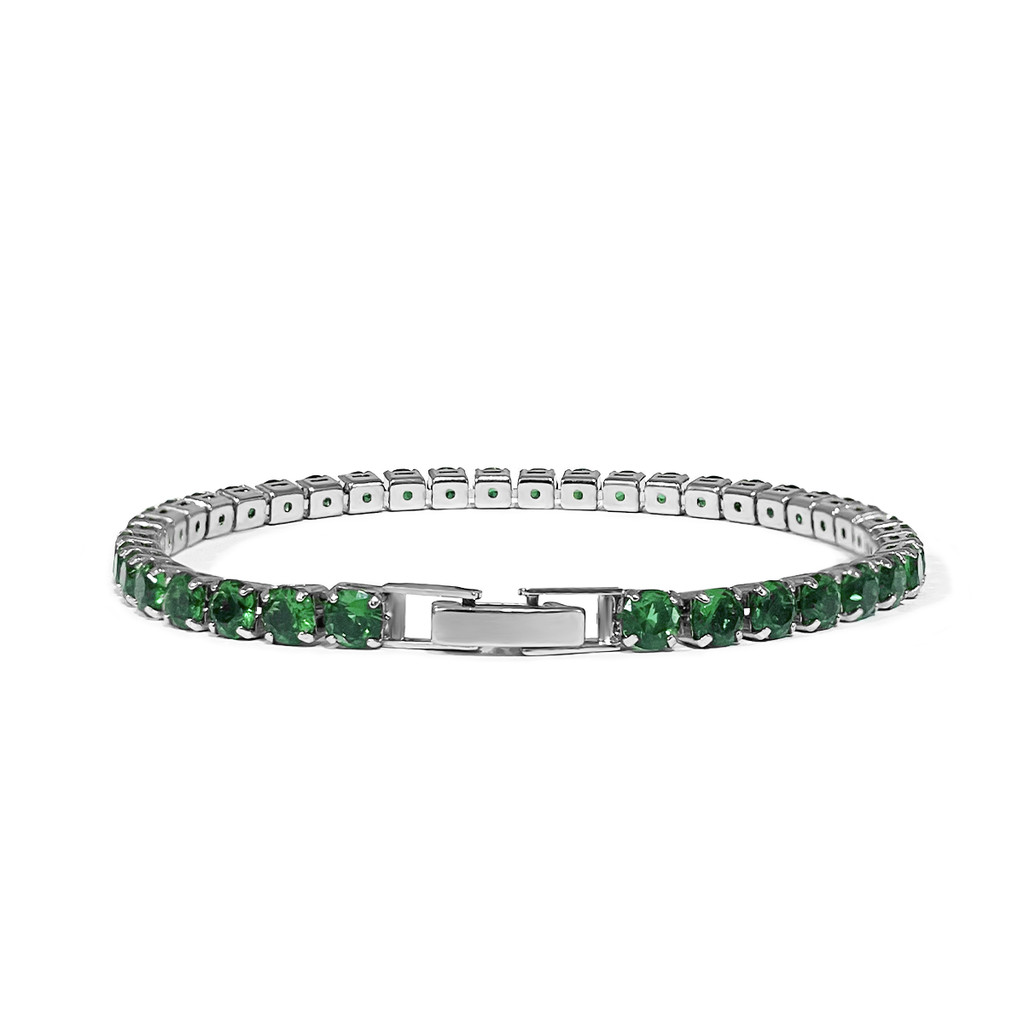 Pulseira Riviera Zircônia Verde Com Fecho Gaveta Premium Clarke Jóia Masculina Elegante Sofisticada