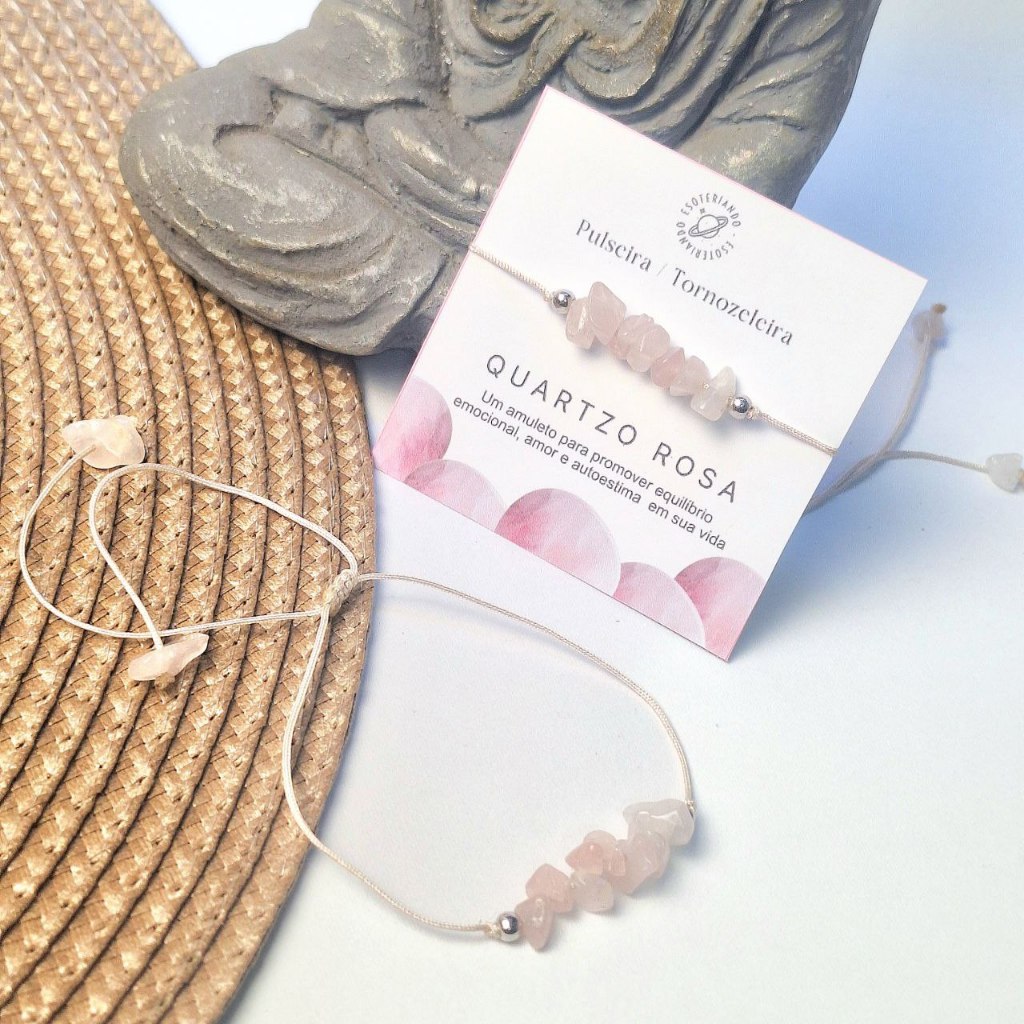Pulseira / Tornozeleira de Pedra Quartzo Rosa| Modelo Ajustável macramê | Tornozeleira de praia amor e autoestima