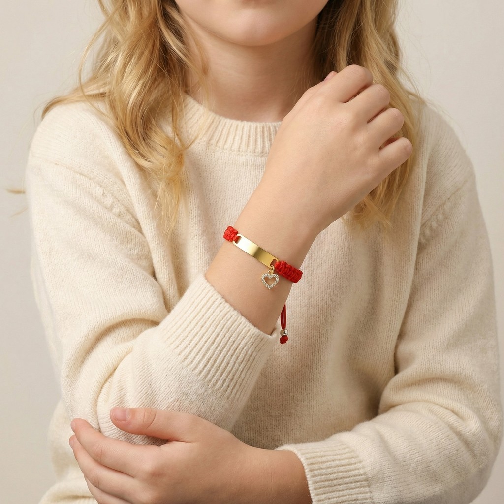 Pulseira Trançada Vermelha Gravada Banhada A Ouro Vnox Para Meninas , Infantil Personalizada Com Zircônia E Coração , Jo