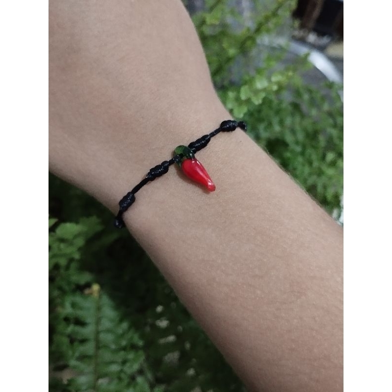 O que significa cada nó da pulseira de 7 nós? Significado 7 Nós: Cada nó representa áreas vitais da vida, incluindo amor, saúde, sucesso, proteção, harmonia, equilíbrio e conexão espiritual. A pimenta é usada como amuleto contra energia negativa, mau-olhado e inveja há muitos séculos. Como utilizar a pulseira Kabbalah? Como usar: A pulseira deve ser usada no pulso esquerdo, porque este é o lado do qual a alma atrai energia vital e, além disso, deve ser colada no pulso por alguém que sente verdadeiro e sincero afeto por quem recebe a pulseira. Pingente de Pimenta em murano. Pulseira regulável confeccionada em fio de seda e fecho de macramê.