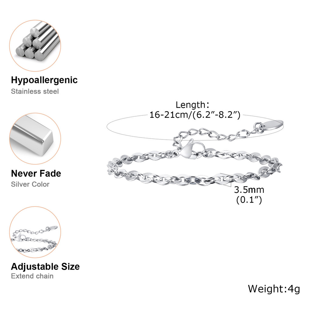 Pulseiras De Corrente Labial Vnox 3.5 Mm Para Mulheres E Casal , Simples Ajustáveis De Aço Inoxidável , Joias Charmosas