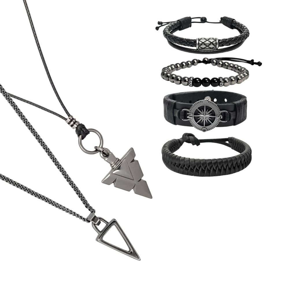 Pulseiras Masculinas Kit C/04 De Couro Bussola + Colares Masculinos