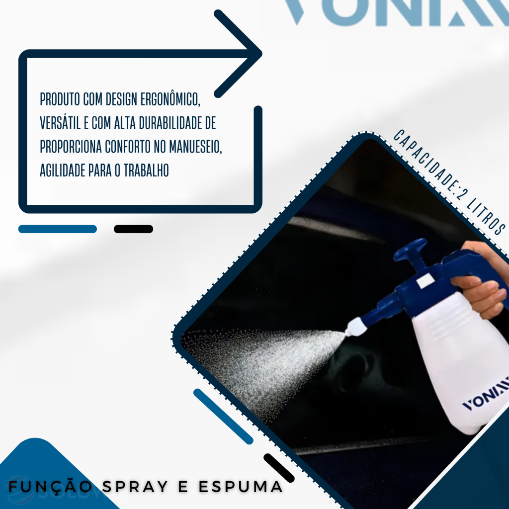 PULVERIZADOR DE COMPRESSÃO VONIXX 2 EM 1.....................................................................................................................................INFORMAÇÕES SOBRE O PRODUTO.....................................................................................................................................O PULVERIZADOR DE COMPRESSÃO MANUAL 2 EM 1 É UM PRODUTO COM DESIGN ERGONÔMICO, VERSÁTIL E COM ALTA DURABILIDADE DE PROPORCIONA CONFORTO NO MANUESEIO, AGILIDADE PARA O TRABALHO, FACILIDADE NA LIMPEZA E ABASTECIMENTO. POSSUI JATO DE ESPUMA ESPESSA E CONTÍNUA, IDEAL PARA LIMPEZA AUTOMOTIVA, ALÉM DE CONTAR COM A FUNÇÃO SPRAY DE PULVERIZAÇÃO DE LÍQUIDOS......................................................................................................................................ESPECIFICAÇÕES DO PRODUTO.....................................................................................................................................CAPACIDADE:2 LITROS2 EM 1: JATO SPRAY E SNOW FOAM .....................................................................................................................................DÚVIDAS FREQUENTES.....................................................................................................................................Pergunta: Como é embalado o produto?Resposta: Todos os nossos produtos vendidos são embalados em caixas lacradas ou plástico stretch. Em respeito ao meio ambiente 90% das caixas são reutilizadas.Pergunta: Quem faz a entrega?Resposta: A entrega é terceirizada, feita via CORREIOS ou TRANSPORTADORA.Pergunta: O envio é feito em quantos dias?Resposta: Nós enviamos o seu pedido no prazo máximo de 24 horas após a confirmação de sua compra, sendo um dos envios mais rápidos da plataforma.Pergunta: Os produtos são novos ou usados?Resposta: Todos os produtos que trabalhamos são novos e com qualidade garantida..................................................................................................................