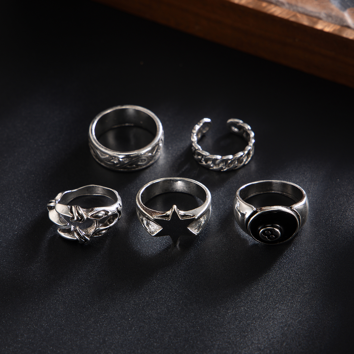 Punk 5 Peças Conjunto de Anéis Pretos 8 Estrelas Empilháveis para Homens Acessórios Diários Frios na Mão Joias
