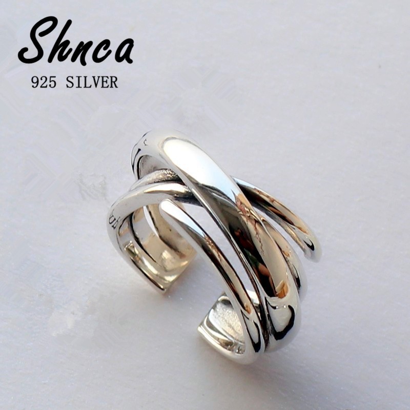 Punk 925 Sterling Silver Glossy Irregular Multi-Layer Fêmea Anel Aberto XR141