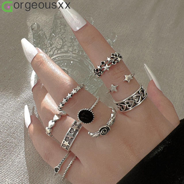 Punk Fashion Personalizado Conjunto Anéis Estrelas Do Coração Amor Mulheres Junta De Flores Jóias Acessórios Femininos