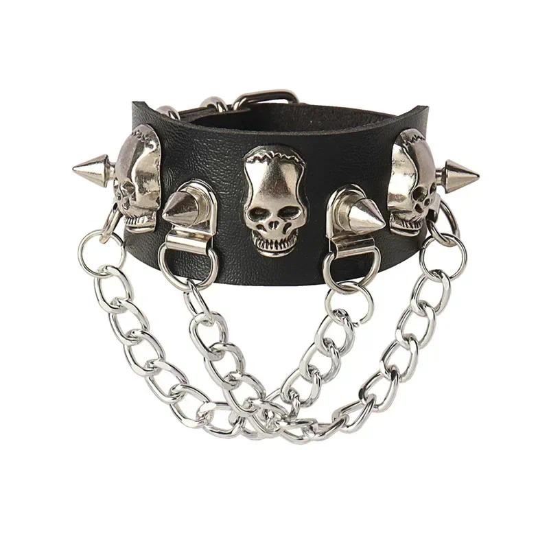 Punk Hip Hop Rock Pulseiras De Couro Do Plutônio Na Moda Corrente Crânio Pentagrama Rebite Festa Jóias Acessórios