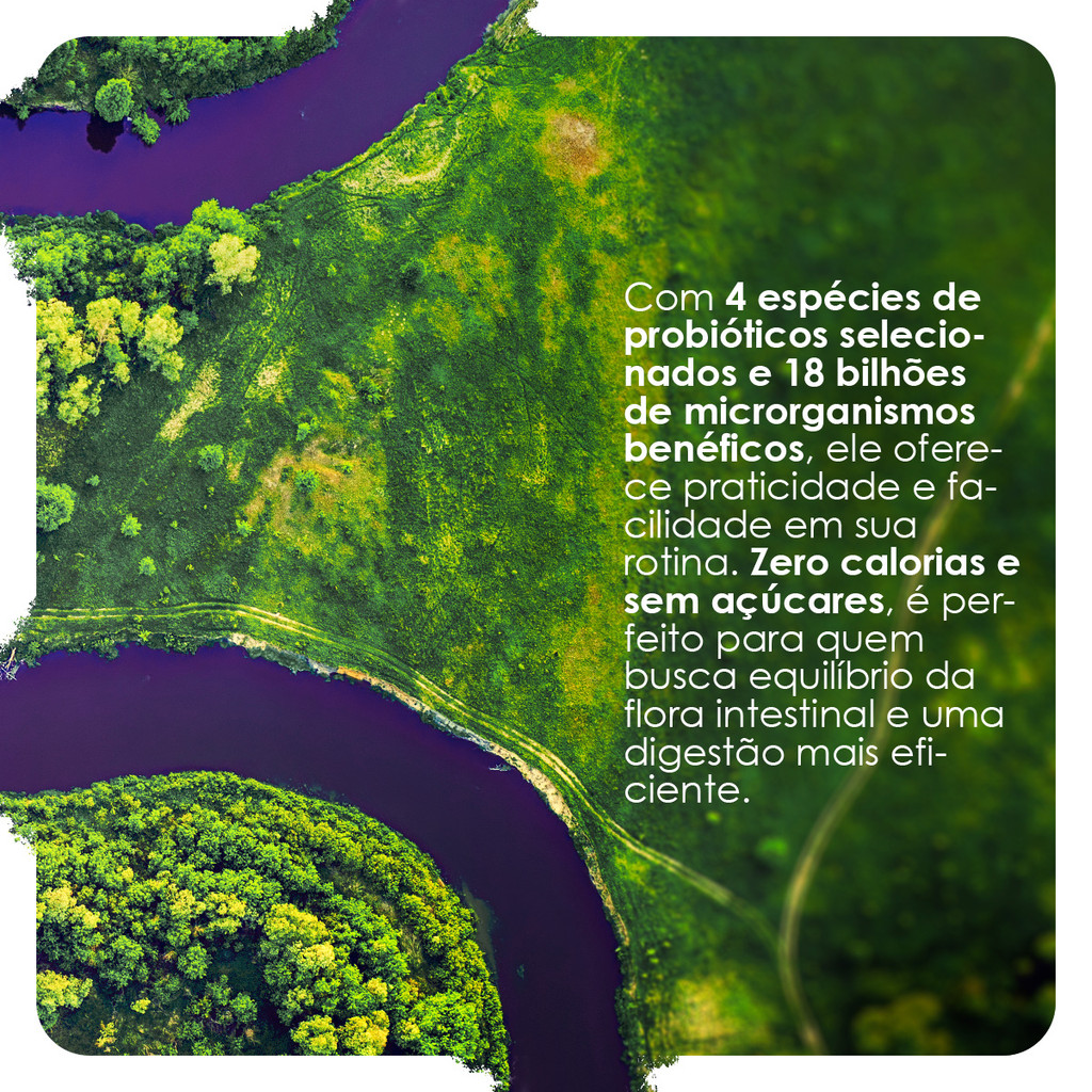 INFORMAÇÕES DE DESTAQUE 4 espécies de probióticos selecionados 18 bilhões de microrganismos Prático e fácil de consumir Zero calorias Não contém açúcares DESCRIÇÃO Produto em cápsulas contendo 4 espécies de probióticos selecionados, totalizando 18 bilhões de microrganismos por porção. Zero calorias e sem açúcares, é uma opção prática para quem busca incluir probióticos na rotina alimentar. COMPOSIÇÃO Lactobacillus acidophilus NCFM (ATCC SD5221), Lactobacillus paracasei Lpc-37 (ATCC SD5275), Bifidobacterium animalis subsp. lactis Bl-04 (ATCC SD5219), Bifidobacterium animalis subsp. lactis Bl-07 (ATCC SD5220), agente de massa celulose microcristalina, cápsula (hidroxipropilmetilcelulose), antiumectantes estearato de magnésio e dióxido de silício. NÃO CONTÉM GLÚTEN. SUGESTÃO DE USO Ingerir 3 cápsulas ao dia ou conforme orientação de profissional de saúde.