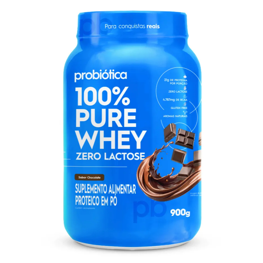 O 100% Pure Whey Zero Lactose contém a WPC sem lactose, uma proteína concentrada do soro do leite com tecnologia que garante a ausência de lactose no produto, podendo ser consumida por pessoas com intolerância a esse carboidrato. Além disso, o 100% Pure Whey Zero Lactose conta com aromas e edulcorantes naturais, possui 21g de proteína por porção e os aminoácidos de cadeia ramificada (BCAA, sua sigla em inglês) leucina, isoleucina e valina, fornecendo 4,9g de BCAAs por porção. O 100% Pure Whey Zero Lactose 900g Sabores da Probiótica é um suplemento proteico de alta qualidade, desenvolvido para atender as necessidades de atletas e praticantes de atividades físicas que buscam melhorar sua performance e acelerar a recuperação muscular. Composto por proteína concentrada do soro do leite (WPC) sem lactose, cada porção oferece de 21g a 22g de proteína, essenciais para promover a construção muscular, suporte à saúde óssea e manutenção da massa magra, mesmo após treinos de alta intensidade. Sua textura cremosa e rápida dissolução tornam o 100% Pure Whey Zero Lactose uma opção prática e eficiente para quem deseja otimizar a ingestão proteica com um produto de fácil preparo e alto valor nutricional. Desenvolvido com matérias-primas rigorosamente selecionadas, o 100% Pure Whey Zero Lactose 900g é a escolha ideal para quem precisa de suplemento com qualidade para acompanhar seu ritmo de vida ativo. Garanta máxima performance com a Probiótica, pioneira em nutrição esportiva. Oferece de 21g a 22g de proteína por porção Ajuda na formação de músculos e ossos Contém proteínas de alta qualidade e minerais Disponível nos sabores Baunilha, Morango e Chocolate Produzido com WPC sem lactose Recomendação de uso A quantidade de whey a ser consumida deve ser ajustada de acordo com o peso, nível de atividade física e metas de desempenho de cada atleta. Em média, recomenda-se a ingestão de 20 a 40 gramas por dia, preferencialmente logo após o treino ou para substituir uma refeição, dependendo dos objetivos. Para maximizar os resultados, é indicado combinar o whey com fontes de carboidratos e gorduras saudáveis. O whey protein concentrado é especialmente eficaz quando consumido após atividades de alta intensidade, pois ajuda a estimular a síntese proteica e reduzir o catabolismo muscular. Também pode ser utilizado em outros momentos do dia, como entre refeições ou no pré-treino, garantindo aporte contínuo de proteínas que favorecem o ganho e manutenção da massa magra. Para garantir que a suplementação esteja alinhada com os objetivos de performance e condicionamento físico, recomenda-se sempre a orientação de um nutricionista, que poderá personalizar a quantidade e os momentos ideais de consumo.