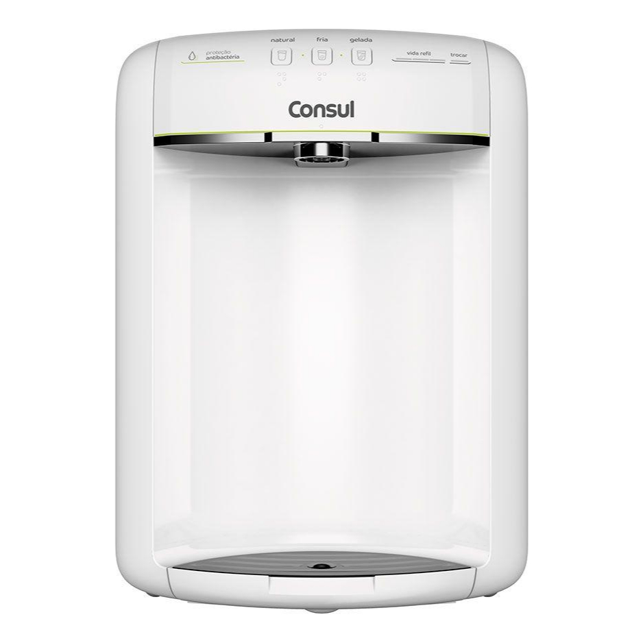O Purificador de Água Consul é a escolha perfeita para garantir água pura e gelada em sua casa. Com seu sistema de alta capacidade de refrigeração, ele gela a água rapidamente, oferecendo praticidade para o seu dia a dia. Com 3 níveis de temperatura ajustáveis – natural, fria ou gelada –, você pode escolher a ideal para qualquer momento. Além disso, o indicador gradual de vida útil do refil avisa quando é hora de fazer a troca, assegurando água sempre limpa e segura para o consumo. O purificador também conta com proteção antibacteriana, eliminando impurezas e garantindo mais saúde para a sua família. A troca do refil é fácil e rápida, sem a necessidade de assistência técnica. Basta girar e substituir. Diferenciais do Purificador Consul: Alta capacidade de refrigeração: Gela mais água em menos tempo. 3 níveis de temperatura: Escolha entre natural, fria ou gelada. Indicador de vida útil do refil: Avisa quando é hora de trocar. Proteção antibacteriana: Água livre de bactérias. Refil troca fácil: Troca rápida e simples, sem complicação. Voltagem: 127V ou 220V (Não é bivolt)