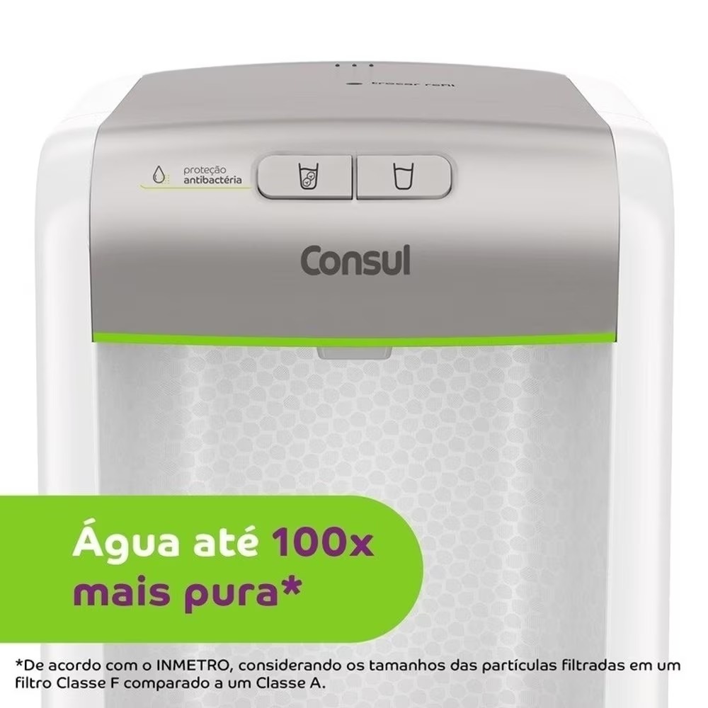 Purificador de Água Consul CPB34AS: Água natural e gelada, experiência refrescante sempre que você precisar. Com a capacidade de realizar o processo de filtragem até mesmo sem energia elétrica para água natural, garante água limpa e saudável em todos os momentos. Benefícios que fazem diferença: Filtragem Classe A: considerada a melhor pelo INMETRO. Seguro: Retém partículas até 60x menores que um grão de areia. Eficiência bacteriológica: Reduz até 99% das bactérias, incluindo a E.Coli, responsável por doenças gastrointestinais. Troca de Refil: Fácil, e em apenas alguns segundos com o sistema girou, trocou. Alerta luminoso: Indica o momento certo para a troca do refil. Instalação prática: Acompanha kit instalação completo. Pode ser instalado na bancada ou parede. Faltou luz? Filtra água NATURAL mesmo sem energia elétrica Características principais: - Voltagem: BIVOLT - Capacidade: 200ml por hora (água gelada) - 2 Níveis de temperatura: Gelada e Natural Especificações Técnicas: - Garantia: 12 meses com o fabricante - Dimensões: 37x26x29 - Peso: 4,5kg Por que escolher a Bumper Magazine? Envio rápido e seguro. Embalagem reforçada para evitar danos. Suporte especializado e garantia de fábrica. Qualidade testada e aprovada por milhares de clientes.