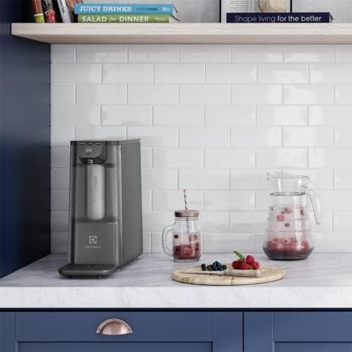 Transforme a saúde da sua família e a estética da sua cozinha com o Purificador Electrolux Pure 4x. Com design moderno e compacto, este modelo é ideal para quem busca água gelada de qualidade sem perder espaço na bancada. Principais Diferenciais Tecnologia Powerjet: Enche seu copo até 4x mais rápido quando comparado a outros modelos do mercado. Ideal para quem não gosta de esperar. Água na Temperatura Certa: Painel Touch com 3 opções de temperatura: Natural, Fria ou Gelada. Filtragem Avançada (Acqua Pure): Tecnologia que reduz cloro, odores e sabores, retém partículas sólidas e possui eficiência bacteriológica (controle de nível microbiológico). Design Compacto: Perfeito para cozinhas pequenas ou escritórios, ocupando pouco espaço sem perder a eficiência. Praticidade no Dia a Dia Alerta de Troca de Filtro: O painel avisa automaticamente quando o refil precisa ser substituído (Luz indicadora). Troca de Refil Fácil: Você mesmo faz a substituição em instantes, sem precisar fechar o registro geral ou chamar técnicos. Bandeja Removível: Facilita a limpeza e permite encher garrafas maiores com conforto. Especificações Técnicas Modelo: PE12G Cor: Cinza (Grafite) Voltagem: Bivolt (compatível com 110V e 220V) EAN: 7909569346105 Dimensões (AxLxP): 33 cm x 16 cm x 34,2 cm Peso: 4,3 kg (aprox.) Capacidade do Reservatório: 0,8 Litros (água gelada) Refrigeração: Eletrônica (Placa Peltier) - Mais silencioso e econômico. Conteúdo da Embalagem 01 Purificador de Água Electrolux PE12G 01 Elemento Filtrante (Refil Original já instalado) 01 Mangueira de 1/4" (aprox. 2 metros) 01 Adaptador de 1/2" para torneira Parafusos e buchas para fixação na parede (opcional) Manual do Usuário Garantia e Instalação Produto original Electrolux com garantia de fábrica. Fácil instalação: Pode ser usado na bancada ou fixado na parede.