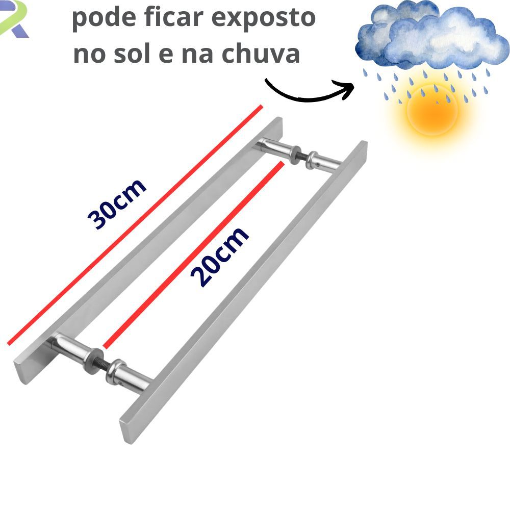 Bem vindo à Renascer Metais! Tenha uma ótima experiência de compra. Somos uma empresa comprometida com a satisfação de nossos clientes. Temos orgulho de ajudar a transformar casas em lares, oferecendo produtos de qualidade que proporcionam conforto, estilo e durabilidade. Como o próprio nome do produto já diz, este puxador foi pensado para trazer mais elegância as suas portas. Com seu design plano e cantos achatados, o produto se da bem com todas elas. Isso mesmo! Este Puxador tem funcionalidade para todas as portas, desde que sejam de até 5cm de espessura. Especificações do Produto - Material: Alumínio Maciço - Largura : 25mm - Acabamento: Polido com Auto Brilho - Modelo: Elegance (Quadrado, Barra Chata, Plano Barra chata) - Fixação com Parafuso: 3/8 - Espessura da Barra: 10mm - Medidas da Barra: 60cm - Medida entre furos: 50cm - Medidas da Barra: 30cm - Medida entre furos: 20cm Enviamos em mais quantidades, caso desejar solicite seu link. Envio imediato !! Conteúdo da embalagem 01 Puxador Alumínio Duplo Informações adicionais -Como instalar? 1. Desmontar o kit e verificar a medida entre furos do puxador Primeiramente, pegue a chave allen preta e desprenda os dois parafusos allen que estão nos pezinhos do puxador fêmea. Desaperte os parafusos somente para desprender o puxador dos parafusos. É melhor que os parafusos allen continuem no puxador. Agora, vamos desrosquear os dois parafusos grandes do puxador macho. Separe e guarde as rosetas (arruelas) e o nylon. Com o kit desmontado, verifique qual é a medida entre furos do puxador (também chamado de furação). A furação é a medida do centro de um furo ao outro. Você pode verificar essa medida com a trena começando a medição do centro de um dos furos até o outro ou verificar a medida da furação na descrição do puxador na página do produto. 2. Marcação na porta dos locais que serão furados Com a medida da furação em mãos, você deve marcar esses dois pontos na porta aonde o puxador será instalado. Não existe uma regra de distância do puxador com relação ao batente ou melhor posição de instalação. Tudo vai depender das condições da porta e do gosto da pessoa em escolher uma posição ideal. Fure os dois pontos marcados com uma furadeira com broca de 6,5mm. 3. Cortar os parafusos Coloque um dos parafusos no furo. O parafuso ficará com uma sobra após atravessar a porta. Devemos deixar essa sobra com apenas 15mm. Marque o ponto correto contando essa sobra de 15mm e corte os dois parafusos nessa medida. Se necessário, dê uma aparada com uma lima nos locais dos parafusos que formaram rebarbas após os cortes. 4. Instalar o puxador Pegue um dos parafusos grandes que foi cortado e encaixe nele uma das rosetas (arruela) junto com o nylon transparente (se houver). Encaixe de modo que o nylon fique em contato com a porta. Faça o mesmo para o outro parafuso grande. No caso de rosetas com fita dupla face, encaixe de modo que a dupla face fique voltada para a porta. Não faça nada com a dupla face. Encaixe o puxador macho nos dois parafusos grandes no lado do parafuso que não tem o cabeçote. Agora do outro lado da porta, aperte o cabeçote dos dois parafusos com uma chave de fenda até o puxador ficar bem firme. Por fim, encaixe o puxador fêmea nos dois cabeçotes dos parafusos. Pegue a chave allen preta e aperte bem os dois parafusos allen que estão nos pezinhos do puxador. Pronto! Terminou a instalação do puxador.