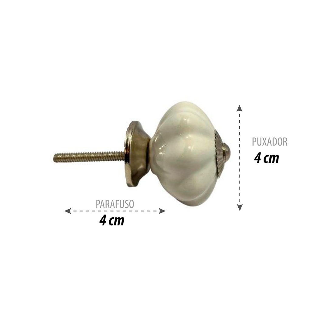 Puxador Cerâmica Melon Branco Metal 4x4x3cm Decorativo para Móveis Armário Gaveta Comoda