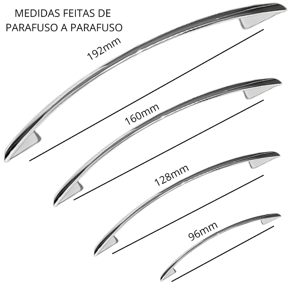 Puxador Curvo Tipo Meia Lua Para Móveis Armários Gaveta Metal Cromado Várias Medidas