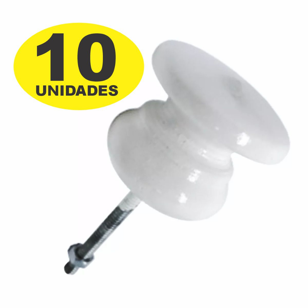 Puxador De Madeira Redondo Gaveta Porta Kit 10 Peças Branco