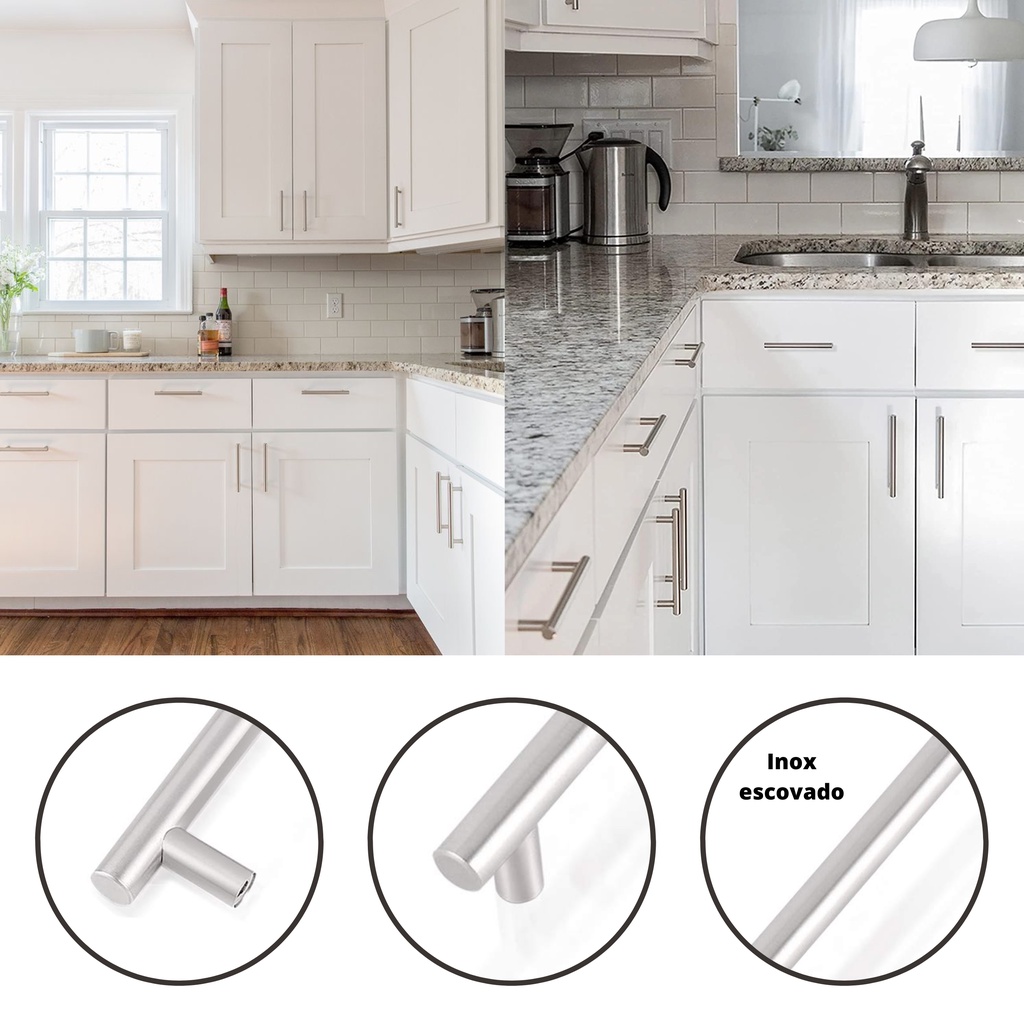 Puxador Haste Redondo Aço Inox Escovado Moveis 12mm