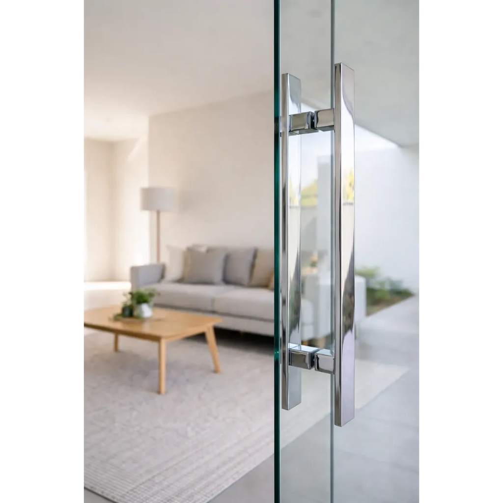 Puxador Inox Duplo 60cm Para Porta Madeira Vidro Alumínio Pivotante