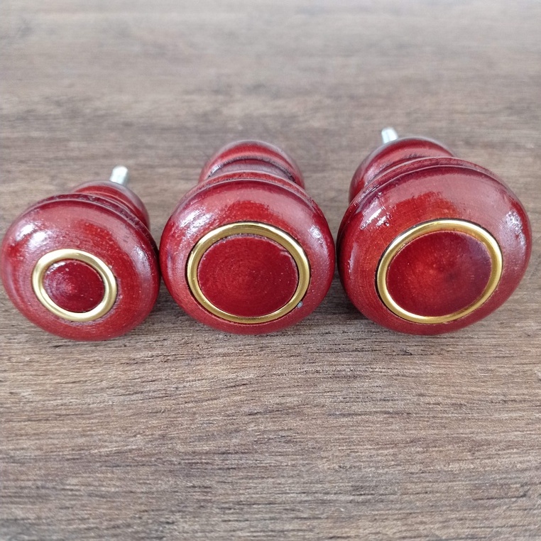 Puxador Madeira mogno kit 4/5/6 peças c/ Anel dourado, para porta, cômoda, gaveta e moveis em geral