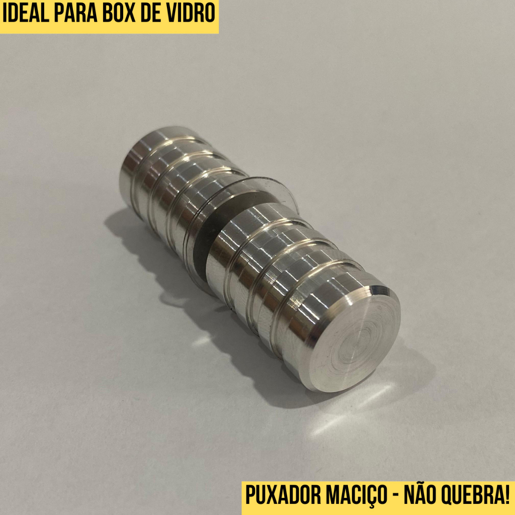Conheça mais sobre essa ótima opção de Puxador: 01 Puxador para BOX de Vidro - Modelo Cone com Frisos - Alumínio Maciço - Diâmetro de 1,9cm. *Fabricado em Metal Maciço! Seu Acabamento Semi-brilho, não descasca, não mancha e não enferruja; Diâmetro do Puxador: 1,9cm. Furação: um furo, com diâmetro recomendado de 10mm. Obs.: O puxador é vendido o par, ou seja, em 02 Lados (lado interno e lado externo da porta) VANTAGENS COMPRANDO COM NOSSA EMPRESA -Produto com ótimo custo benefício! -Garantia de 01 ano; -Testado e aprovado! -Acompanhamento do envio pelo Mercado Livre; -Acompanha Nota Fiscal;