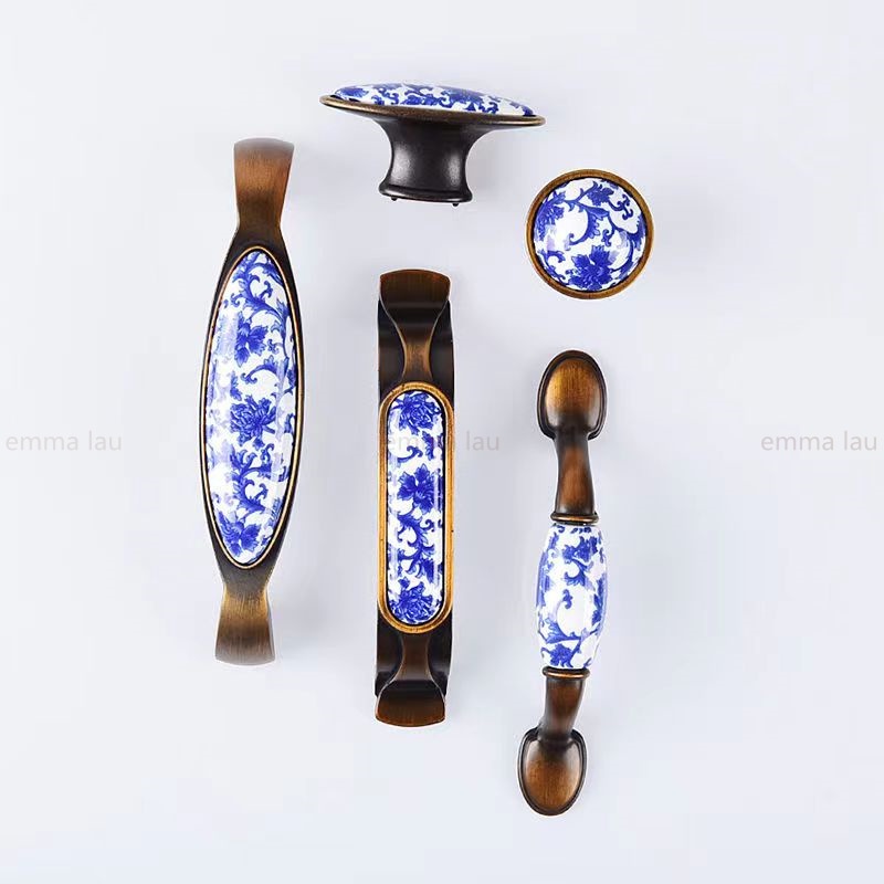 Puxadores De Porcelana Chinesa Azul E Branco Vintage Porta De Armário Cozinha