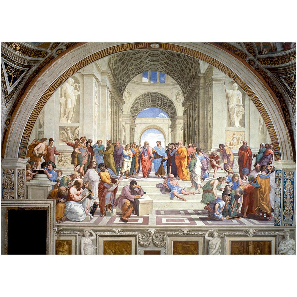 A obra A Escola de Atenas é uma famosa pintura criada por Rafael, no início do século XVI. A cena retratada mostra uma sala de aula com vários filósofos discutindo e debatendo. Entre eles, podemos ver Platão, Sócrates, Aristóteles e muitos outros. Rafael usou uma técnica de pintura conhecida como sfumato, que consiste em suavizar as bordas das figuras e criar uma sensação de profundidade na pintura. Além de sua beleza artística, a obra é um importante símbolo cultural e histórico, representando a busca do conhecimento e da verdade, temas fundamentais para a filosofia grega e para a Renascença. Dimensões aproximadas 70,4 x 97,8 cm Contém 2000 peças