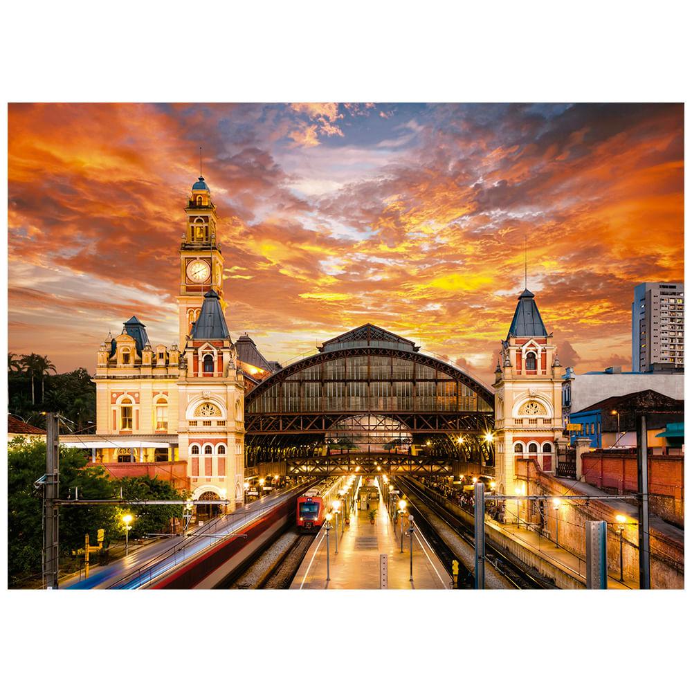Em março de 1901 era inaugurada a estação Ferroviária da Luz, que viria a se tornar um símbolo da cidade de São Paulo. Foi projetada pelo arquiteto Charles Henry Driver, pioneiro no uso de fundição e ferro ornamental para construções, sua influências podem ser percebidas pelas estruturas que imitam o Big Ben de Londres, com direito a um grande relógio. No outro lado do edifício , duas torres paralelas e quadradas, no estilo gótico, remetem à Abadia de Westminster, a igreja de Londres onde os monarcas são coroados. Milhares de pessoas de todas as classes e países já passaram pelas suas dependências e se impactaram com essa obra que é um pedaço da história do Brasil. Dimensões aproximadas 70,4 x 97,8 cm Contém 2000 peças