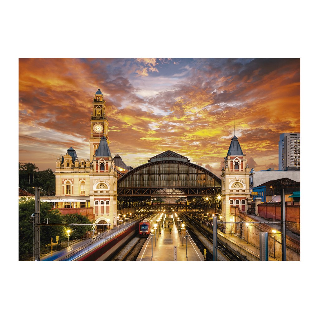 Em março de 1901 era inaugurada a estação Ferroviária da Luz, que viria a se tornar um símbolo da cidade de São Paulo. Foi projetada pelo arquiteto Charles Henry Driver, pioneiro no uso de fundição e ferro ornamental para construções, sua influências podem ser percebidas pelas estruturas que imitam o Big Ben de Londres, com direito a um grande relógio. No outro lado do edifício , duas torres paralelas e quadradas, no estilo gótico, remetem à Abadia de Westminster, a igreja de Londres onde os monarcas são coroados. Milhares de pessoas de todas as classes e países já passaram pelas suas dependências e se impactaram com essa obra que é um pedaço da história do Brasil. Dimensões Aproximadas do Produto: 70,8 x 97,8 (Altura x Largura x Comprimento/Profundidade) Dimensões da Aproximadas da Embalagem: 8,5 x 29 x 42,4 (Altura x Largura x Comprimento/Profundidade)