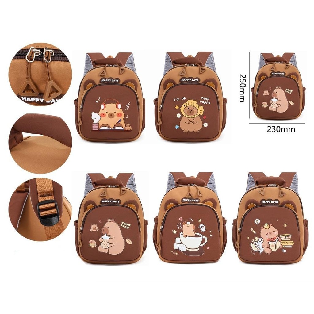 Qiu - Bolsa Escolar Infantil Capybara Fofa Bolsa De Ombro 41x31cm/ 42x32/ 25x23cm Material Escolar